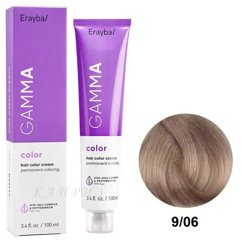 ERAYBA GammaColor — Стійка крем-фарба для волосся. Містить Фітокератин® — запатентований комплекс натуральних амінокислот рослинного походження, аналог кератину волосся людини, який захищає структуру волосся в процесі фарбування. Гідролізовані протеїни пшениці, кукурудзи та сої кондиціонують, підсилюють блиск, надає волоссю м'якість і шовковистість. Спеціальні молекули кольору підвищують інтенсивність і стійкість фарбування. Олія насіння пінника лугового та UV-B фільтри забезпечують чудовий захист кольору. Не містить ПКД. У формі парфумованого крему.